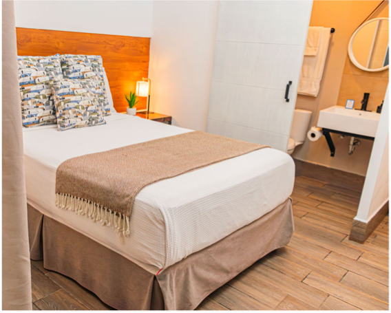 Nuestra habitación más completa: una suite amplia con cama king, área de descanso y cocina parcial. Ideal para estancias largas o para quienes desean más espacio para relajarse y trabajar con comodidad.